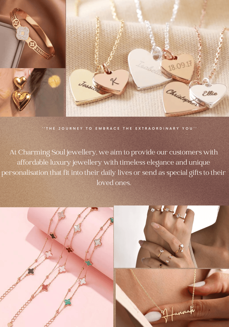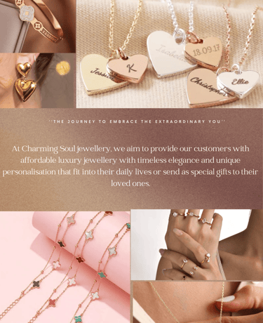 Based in London, Charming Soul thrives to provide customers with beautifully crafted jewellery that brings elegance, uniqueness, and personalisation. We are committed to making your jewellery shopping experience as enjoyable as the sparkling pieces you fancy with affordable price and long durability.